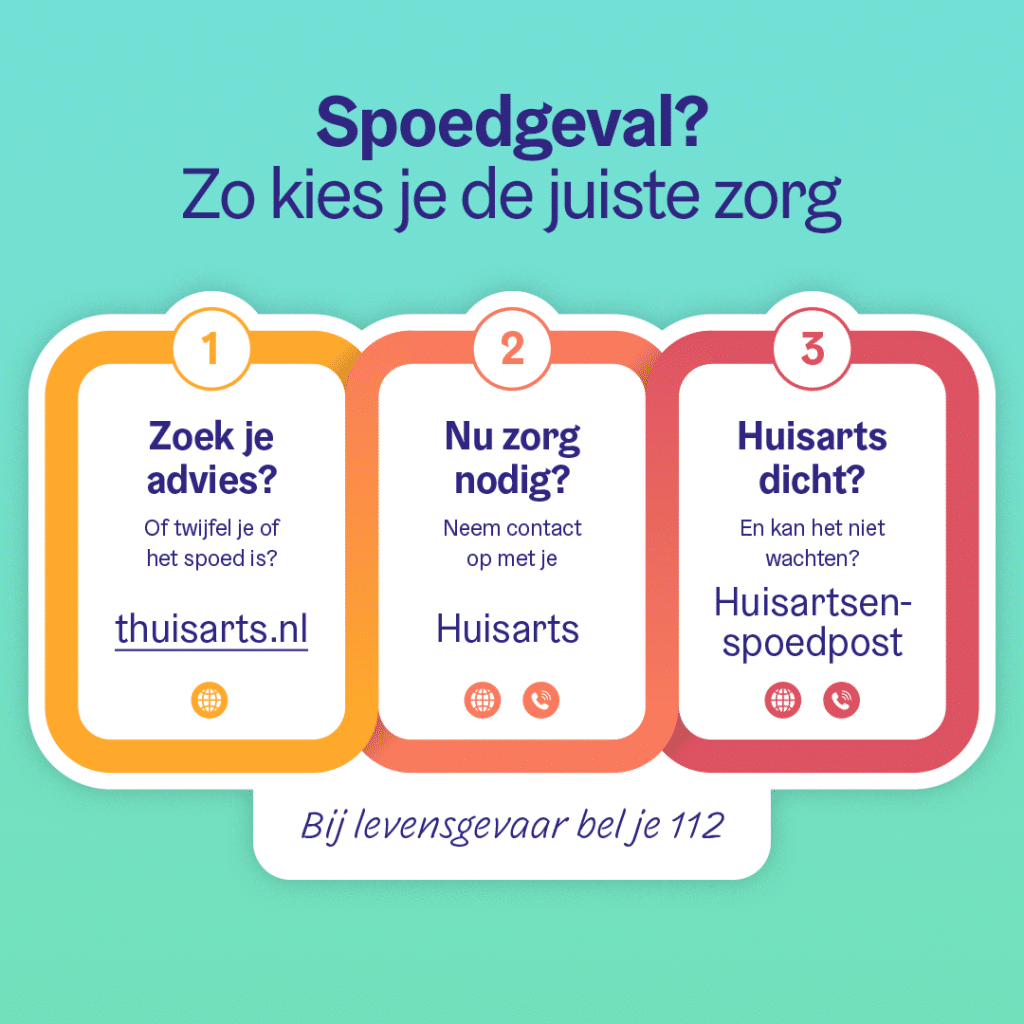 Na 17.00 uur en in de weekenden kunt u voor spoedgevallen en dringende medische vragen bellen met de